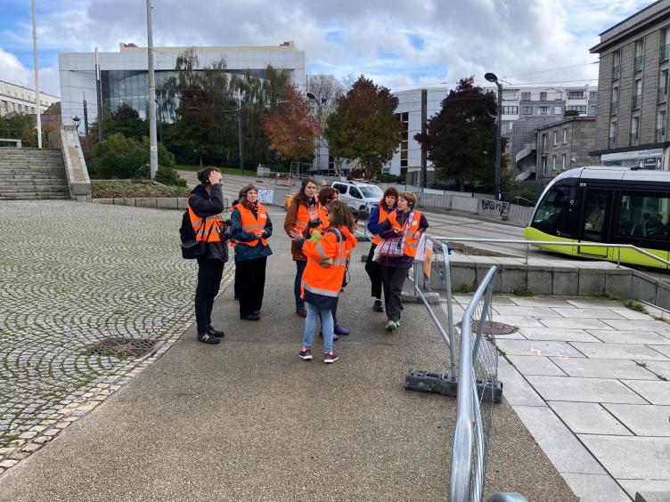 Mardi 21 octobre, un groupe de l'EESAB (Ecole européenne Supérieure d'Art de Bretagne) a bénéficié d'une balade commentée du tracé de la ligne B du Tramway.