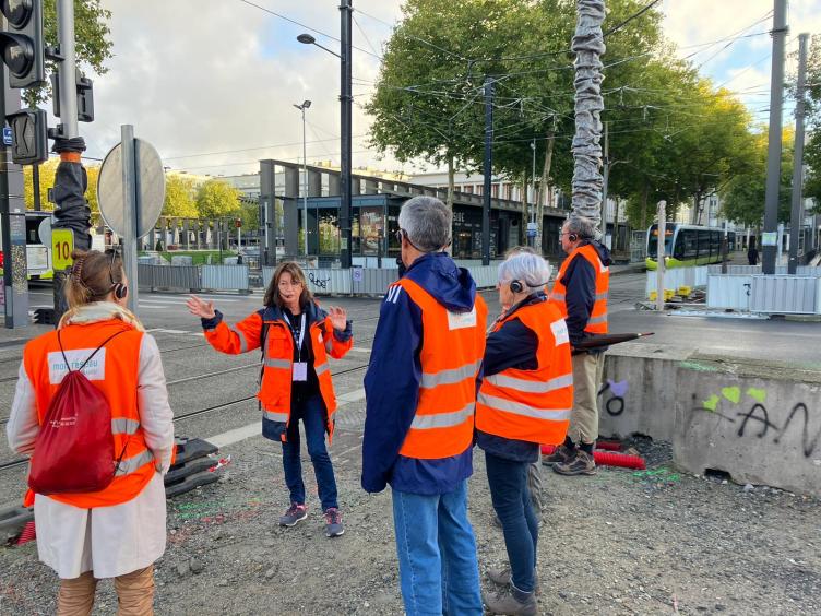 Ici, la médiatrice animatrice explique le fonctionnement d'une SSR* et notamment le re dimensionnement de celle de la Porte de Landerneau avec l'arrivée de la seconde ligne de Tram B.