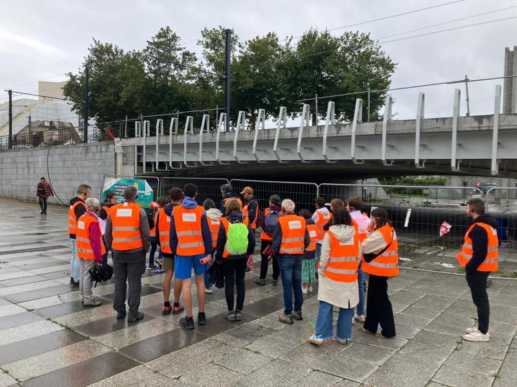 Au niveau du Pont Clemenceau, les groupes ont pu voir la passerelle qui a permis d'élargir le pont et ont bénéficié des explications du renforcement de ce pont.