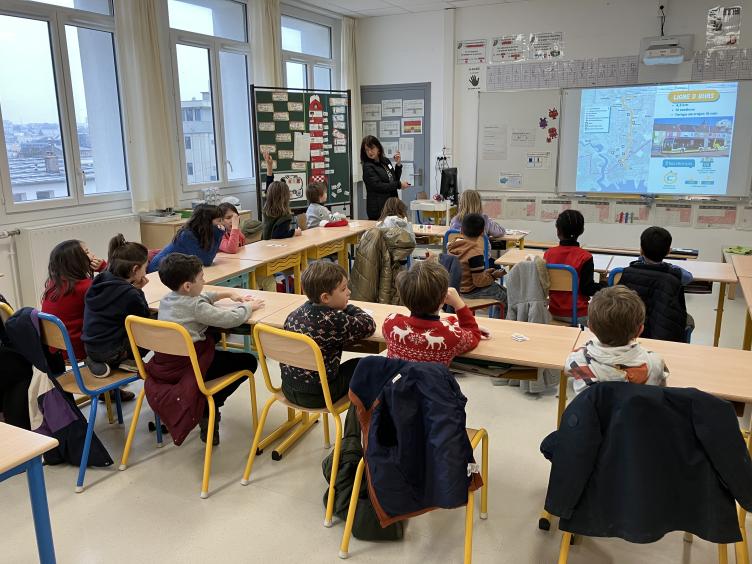 Vendredi 13 décembre, Sylvie Saboureau, médiatrice animatrice et Gaël Malgorn, médiateur chantier Mon réseau grandit se sont déplacés à l'école Simone Veil, pendant la pause méridienne, pour présenter le projet aux enfants du groupe des 7 - 8 ans.