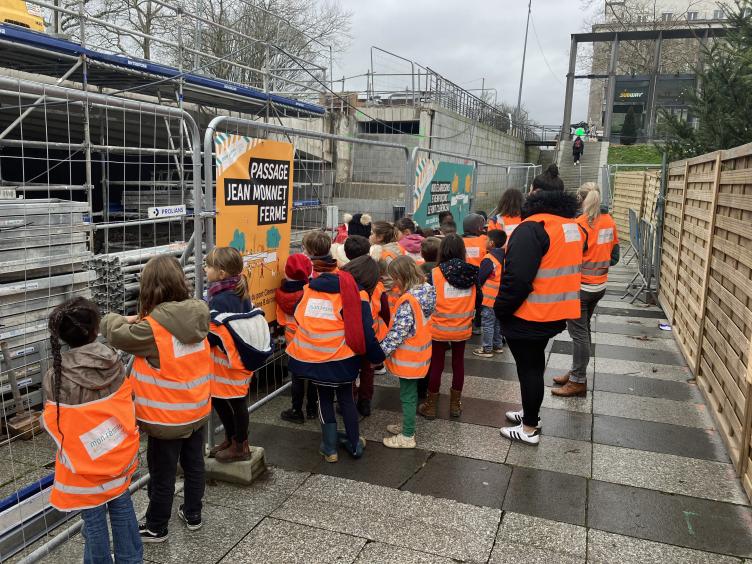 Sur le retour vers l'école, le petit groupe s'est arrêté devant le passage Jean Monnet et ont pu voir l'avancée des travaux de renforcement et d'élargissement du pont Clemenceau